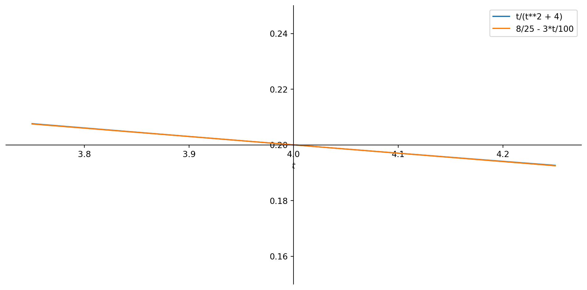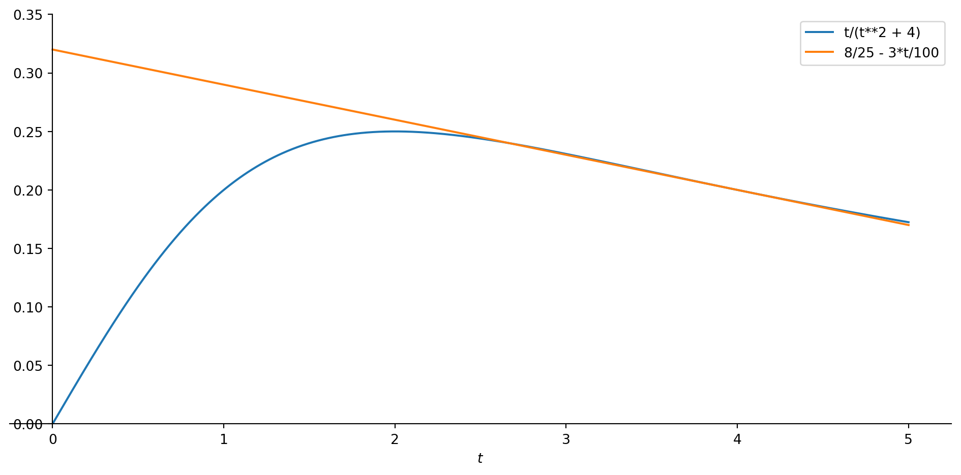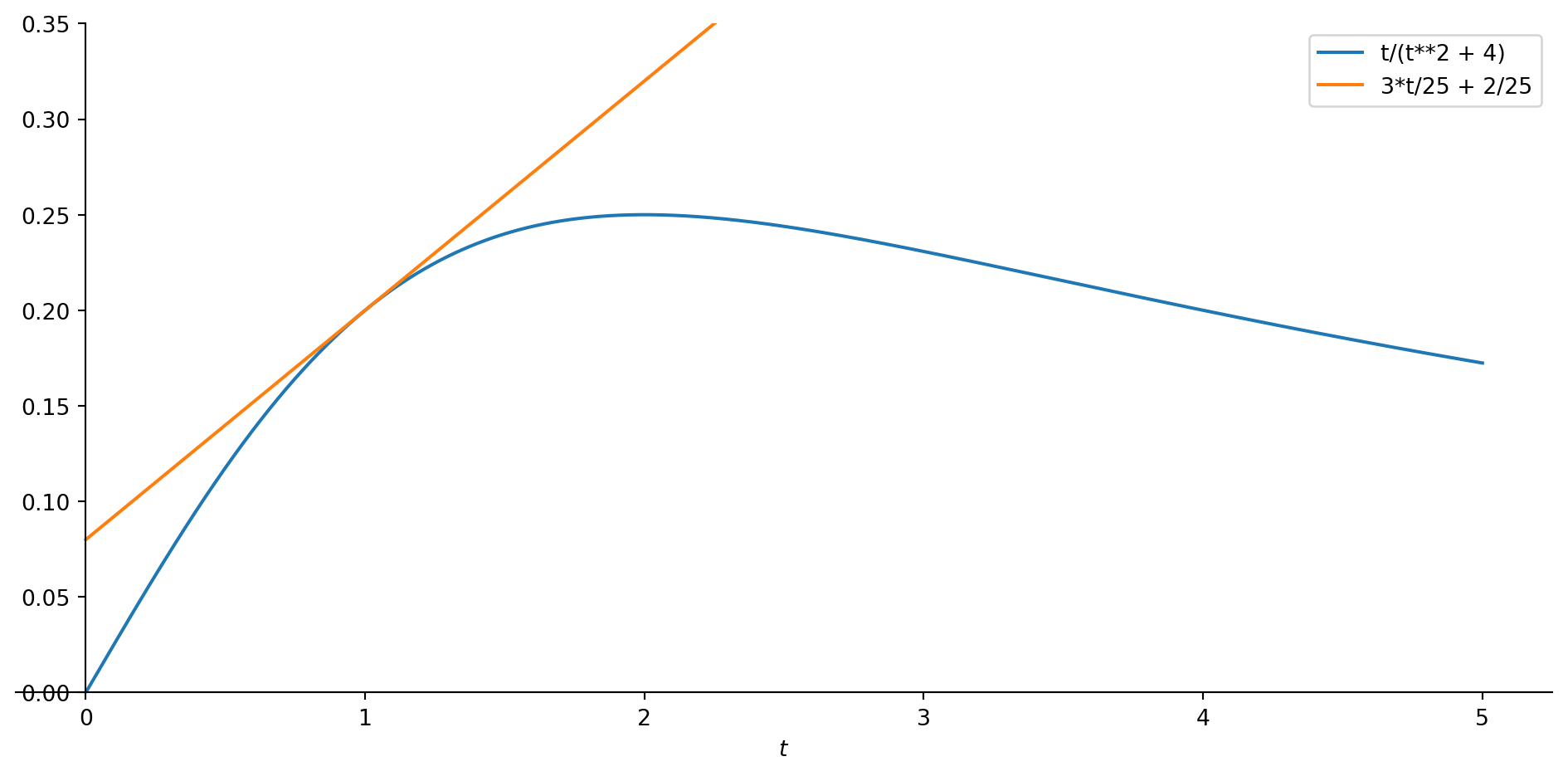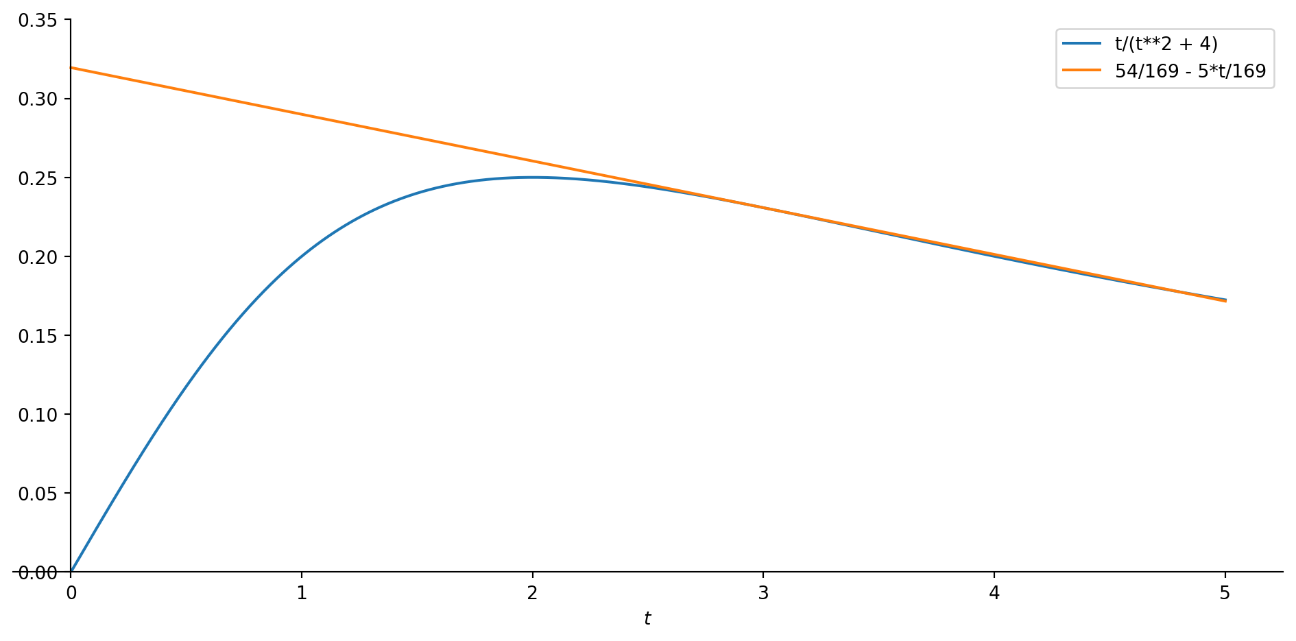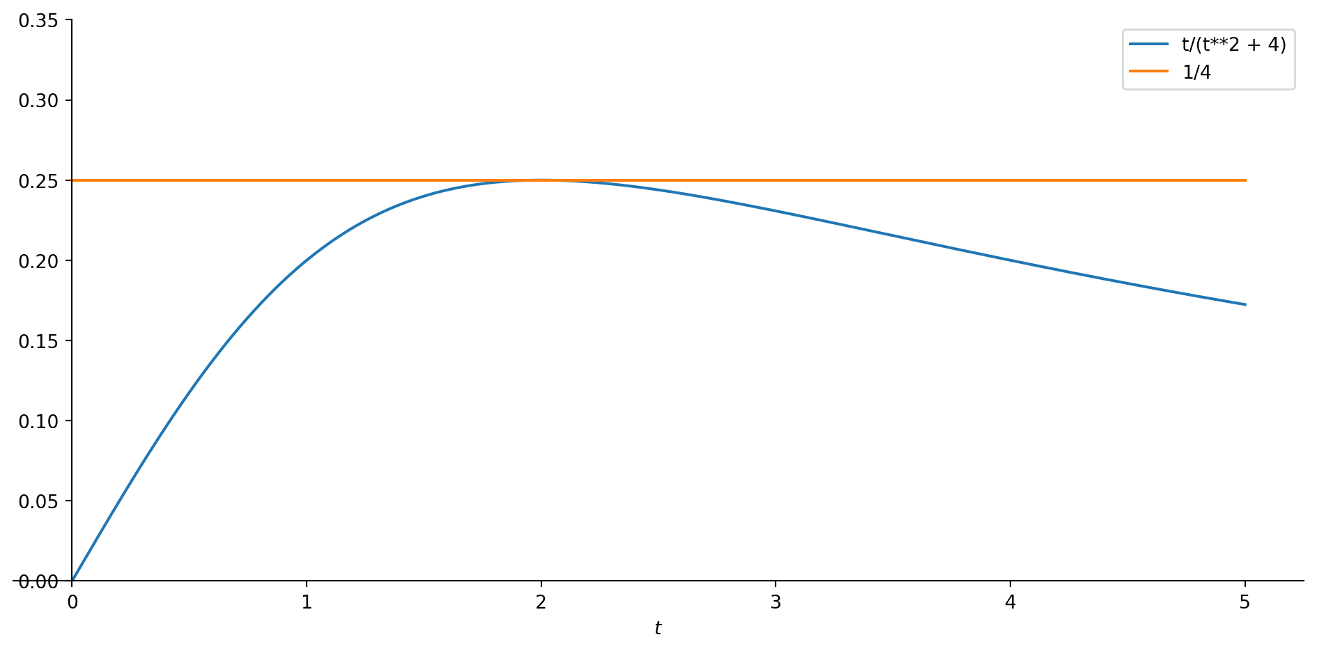 Let us revisit a function from an earlier video: \[c(t)=\frac{t}{t^2+4}\]