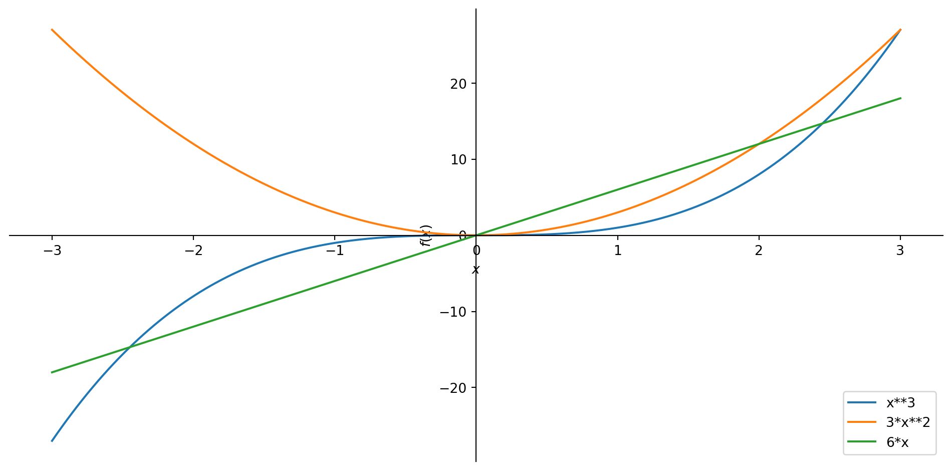 Consider \(f(x)=x^3\). What are the first two derivatives? In a picture:
