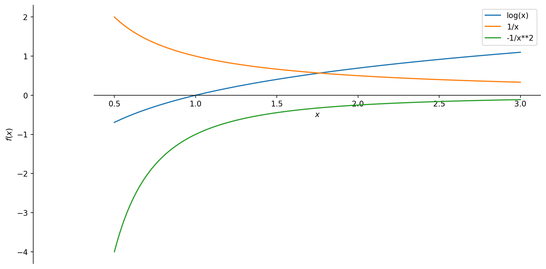 Consider \(f(x)=\ln x\). What are the first two derivatives? In a picture:
