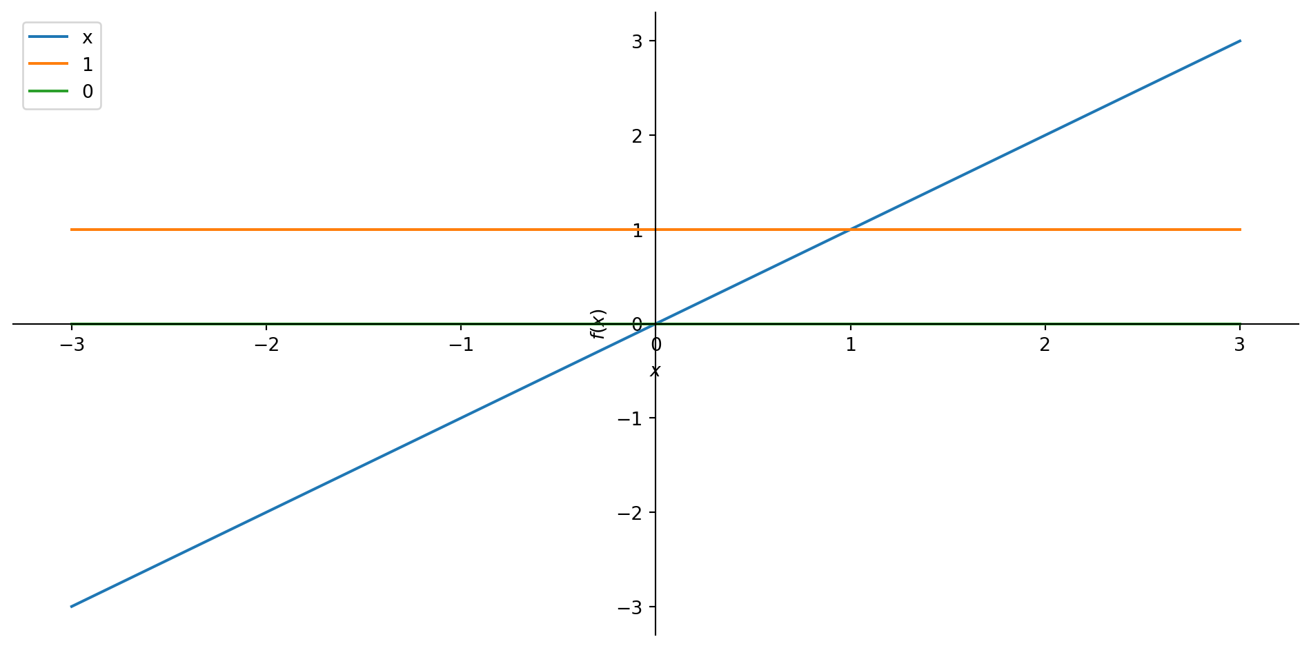 Consider \(f(x)=x\). What are the first two derivatives? In a picture: